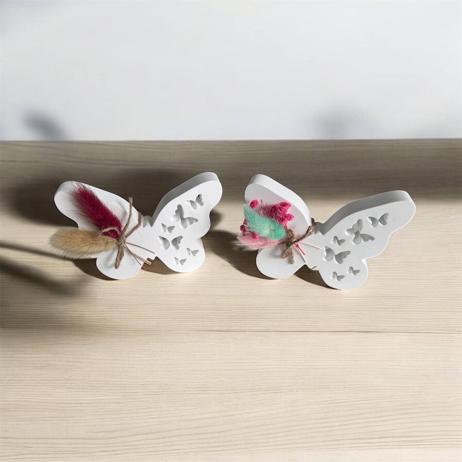 Schmetterling Dekoration aus Gips – Handgefertigte Tischdeko mit Trockenblumen
