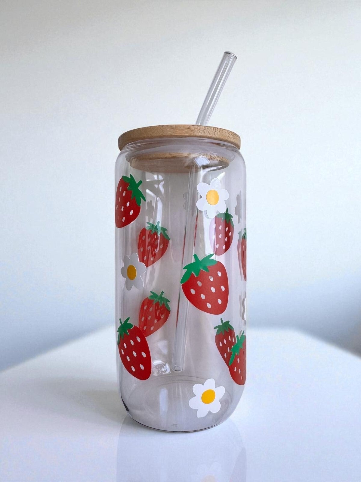 Genieße dein Lieblingsgetränk mit Stil! Dieser trendige Glasbecher ist perfekt für kalte Getränke wie Eiskaffee, Smoothies oder Säfte. Wähle zwischen zwei bezaubernden Designs, die deinem Alltag einen fröhlichen Touch verleihen.